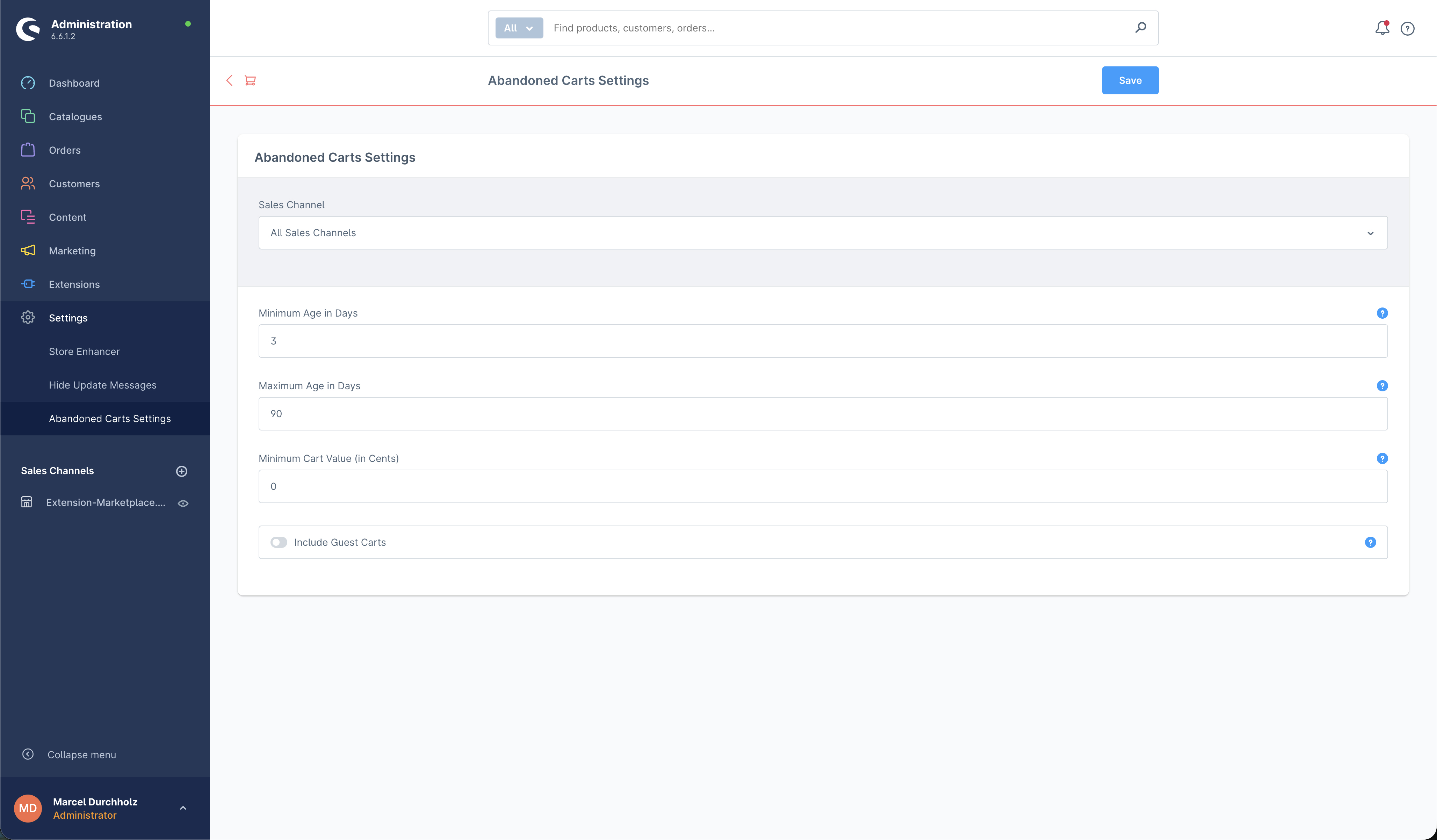 Nahtlose Integration in Shopware 6.6 - Entwickelt speziell für Shopware 6.6, fügt sich DvShopwareAbandonedCarts perfekt in Ihre bestehende Admin-Oberfläche ein. Die Einstellungen finden Sie unter dem Plugin-Menü, wo Sie alle Konfigurationsoptionen zentral verwalten können.