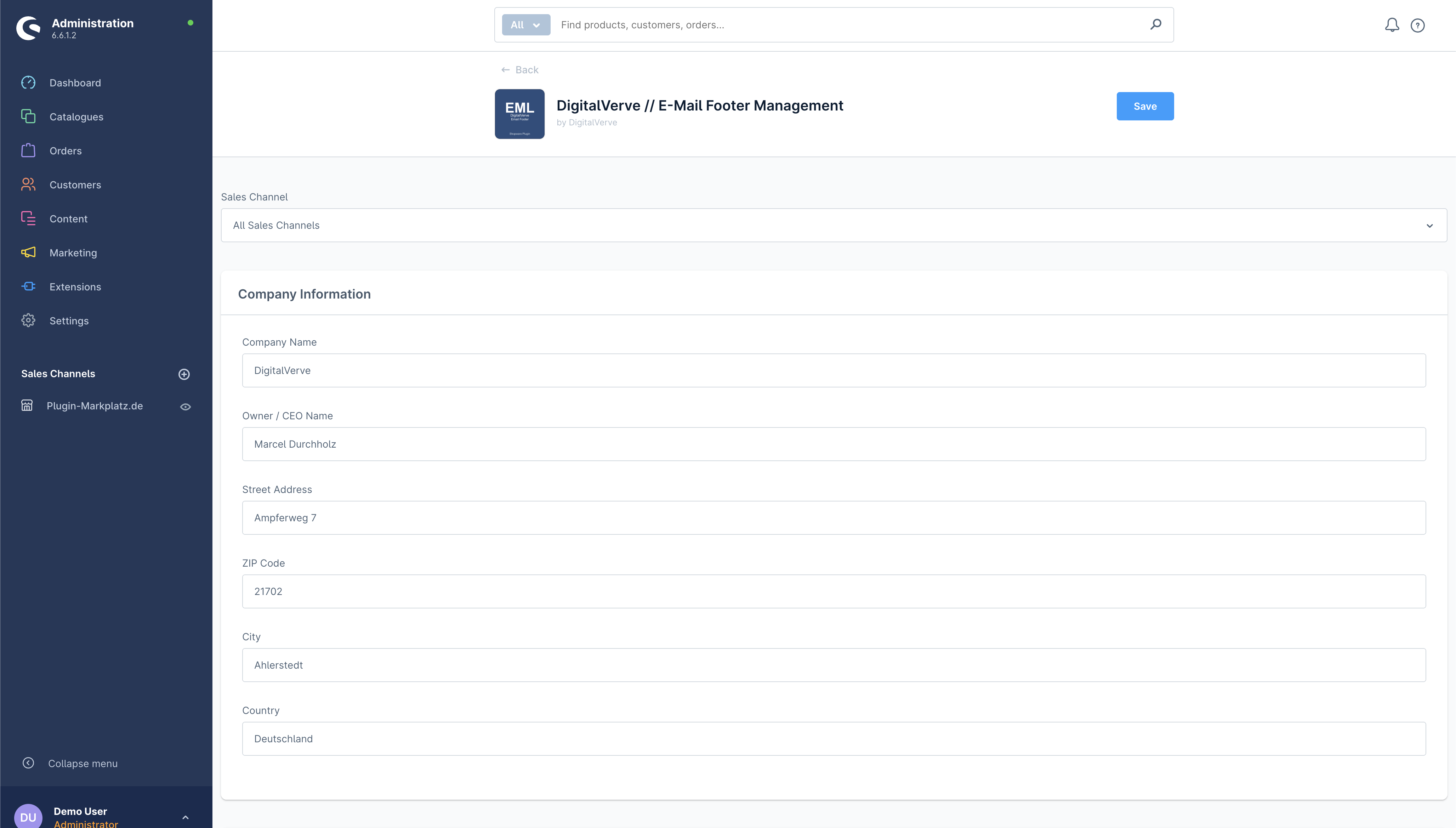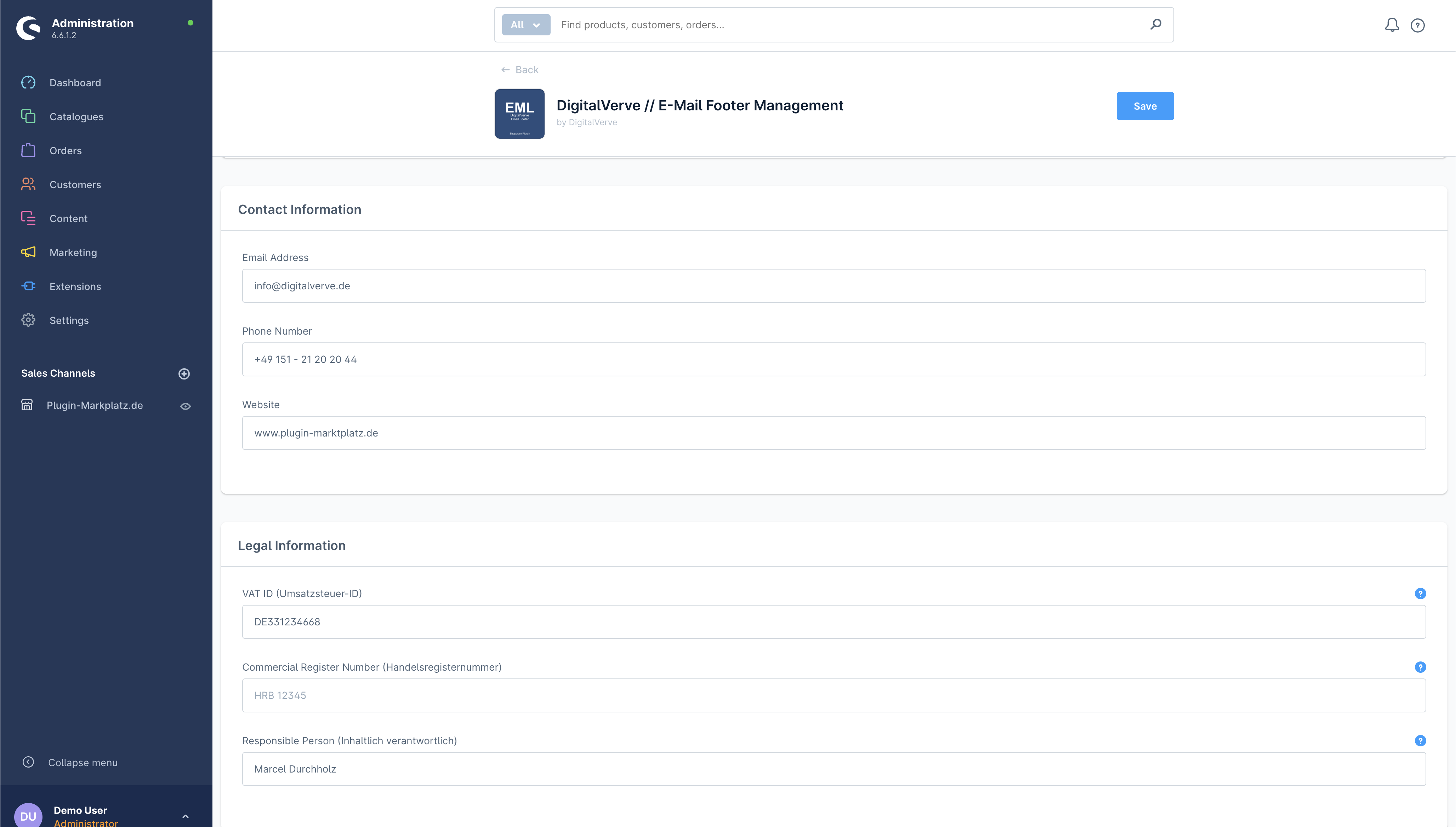 Die Implementierung des Plugins erfordert keine technischen Kenntnisse oder Template-Änderungen. Nach der Installation über Shopwares Standard-Plugin-System navigieren Administratoren einfach zur Plugin-Konfiguration, geben ihre Geschäftsinformationen ein, speichern die Einstellungen, und der Footer beginnt sofort in allen ausgehenden E-Mails zu erscheinen. Der gesamte Prozess dauert in der Regel weniger als fünf Minuten und transformiert Ihre E-Mail-Compliance-Position sofort.
