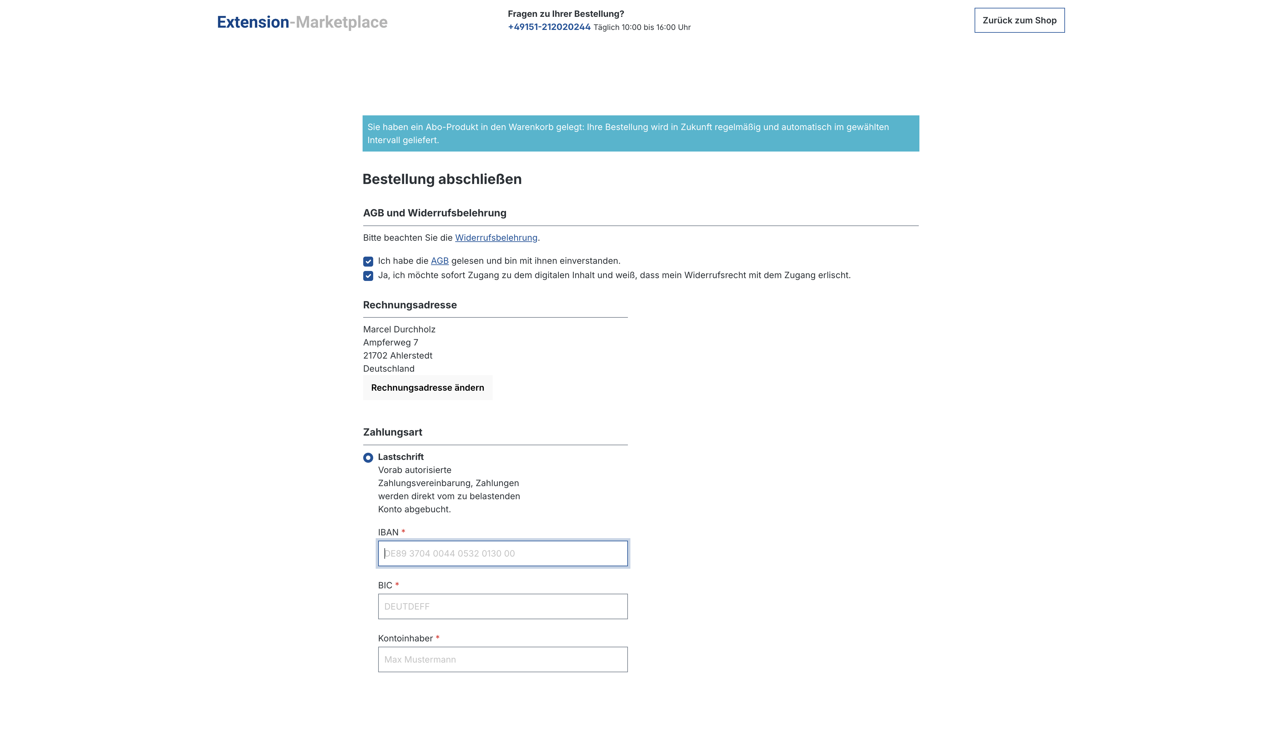 Die verbesserte Datenverwaltung macht dieses Plugin besonders wertvoll für Unternehmen mit komplexen Lastschrift-Anforderungen. Das Plugin speichert alle Bankdaten sicher und strukturiert, was die Verwaltung von wiederkehrenden Zahlungen und Abonnements erheblich vereinfacht. Die Integration mit Shopwares nativer Zahlungsverarbeitung bedeutet, dass alle erweiterten Felder nahtlos in bestehende Workflows integriert werden, ohne zusätzliche Konfiguration oder Anpassungen.